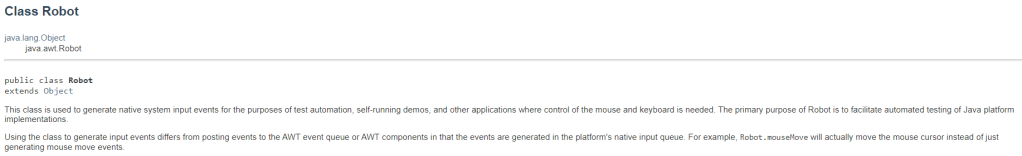 As per the class description, this class is used to generate native system input events like to control the mouse and keyboard. it is part of the Java API awt pack.